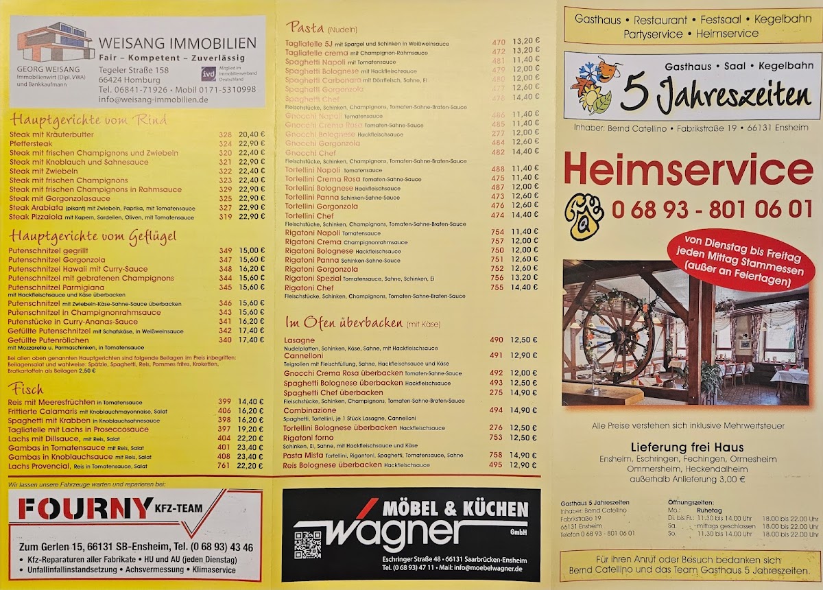 Welcome to Gasthaus Fünf Jahreszeiten, nestled in the heart of Saarbrücken at Fabrikstraße 19. This charming eatery strikes a balance between comforting tradition and culinary delight, making it a beloved local spot.
